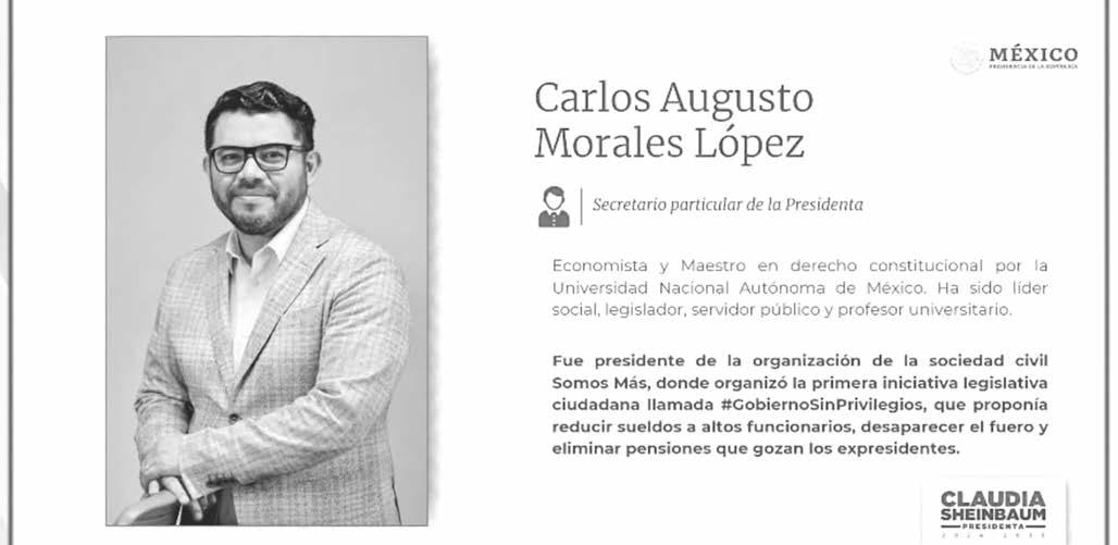 Enconferenciadeprensa ensucasadetransición, tambiénacudióCarlos AugustoMorales,quienla semanapasadaSheinbaum Pardoratificócomosu secretarioparticular.