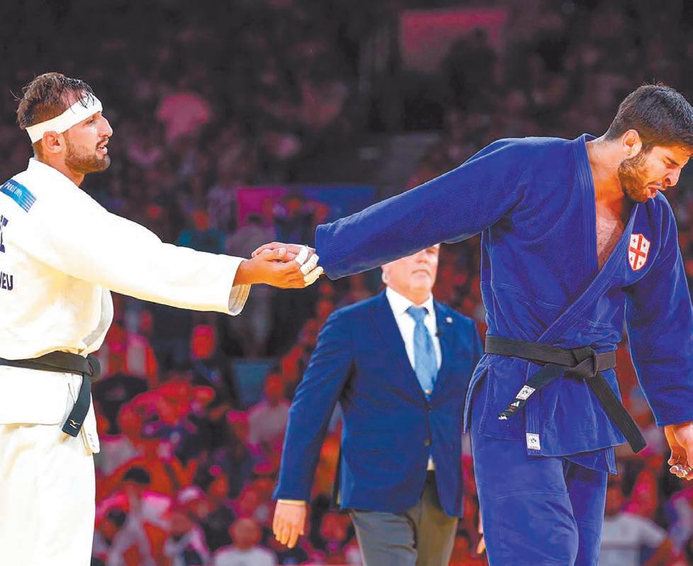 El azerbaiyano Zelym Kotsoyev superó en el combate final a Ilia Sulamanidze, de Georgia, y se ciñó este jueves la corona de los -100 kilogramos, en el judo masculino de los Juegos Olímpicos de París 2024. Kotsoyev, de origen osetio, sufrió un wazari cuando aún no se había cumplido un minuto, pero a partir de ahí aumentó su agresividad e intentó de varias maneras desequilibrar el enfrentamiento ante Sulamanidze. En definitivita, el georgiano no resistió el empuje de su rival y fue amonestado por ataque falso y dos veces por evitar el agarre, por lo que debió conformarse con la medalla de plata. Para acceder a la final, Kotsoyev superó al uzbeco Muzaffarbek Turoboyev y Sulamanidze derrotó al suizo Daniel Eich. Una de las medallas de bronce fue para el israelí nacido en Ucrania, Peter Paltchik, medallista en varias competiciones internacionales, al vencer a Eich, bronce en el Campeonato Europeo de 2022. El otro pergamino bronceado fue para el uzbeco Muzaffarbek Turoboyev, victimario del español Nikoloz Sherazadishvili en combate que involucró a ganadores de tres títulos mundiales.