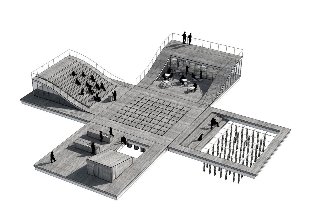 and displace the entire country. Working with local communities and stakeholders, students developed proposals for prototype communities that would be comprehensively designed for sea-level rise, anticipating future flooding and speculating how floating structures might provide a scaffold for communal and civic life.