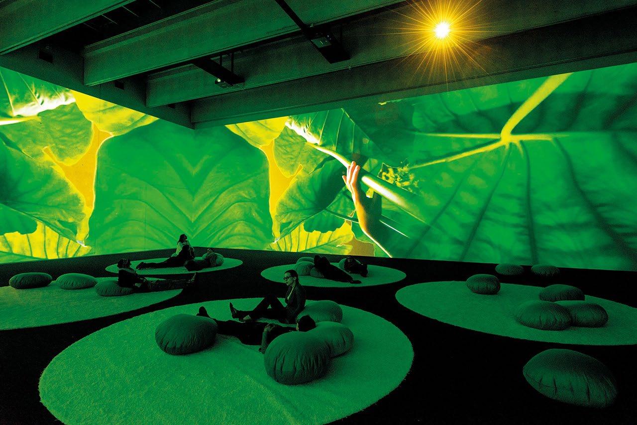 Pipilotti Rist’s work is known for its multi-sensory qualities, with overlapping projected imagery that is highly saturated with color, paired with sound components that are part of a larger environment with spaces for viewers to rest or lounge. Rist’s work often transforms the architecture or environment of a white cube gallery into a more tactile, auditory and visual experience. Highly immersive, her installations play on emotional and physical comfort in order to raise difficult questions of communication, truth and reality.