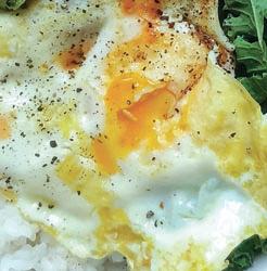 • Mens risen koker steker du eggene i litt olje og krydrer med salt og pepper.