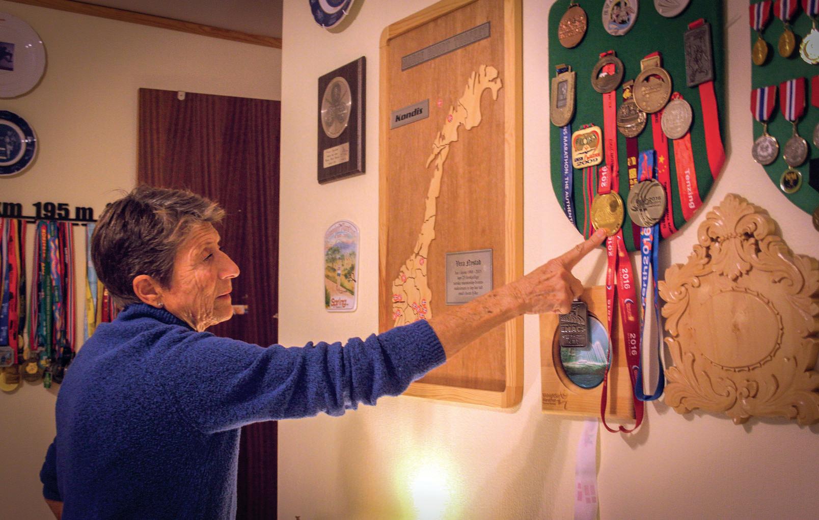 Løpedronningen som er å se på de fleste løp har nettopp satt verdensrekord klassen 75+. Vi stakk innom på 75-årsdagen.