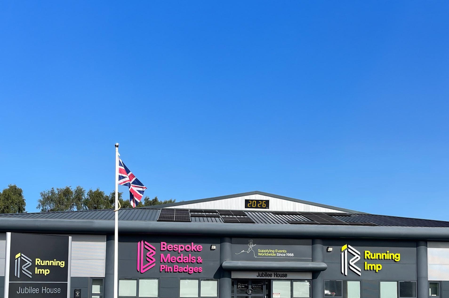 We also care passionately about the environment and sustainability and can now offer 100% recycled medals, ribbons and pin badges and have installed 220 solar panels on our Jubilee House headquarters in Lincoln to become more eco-friendly, see below.