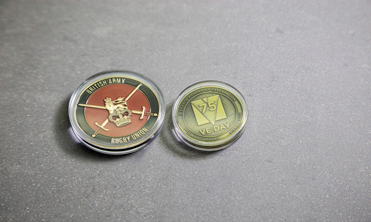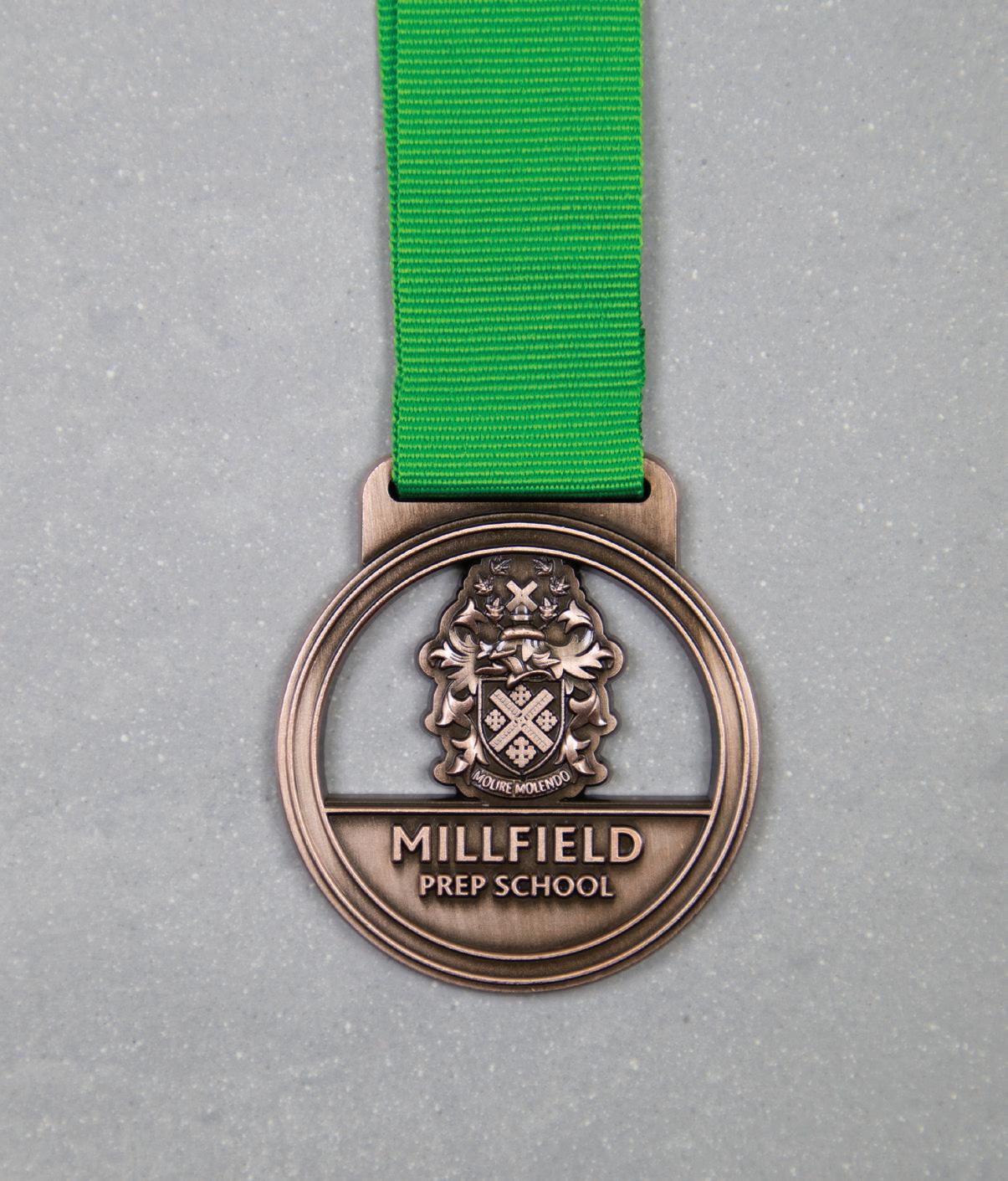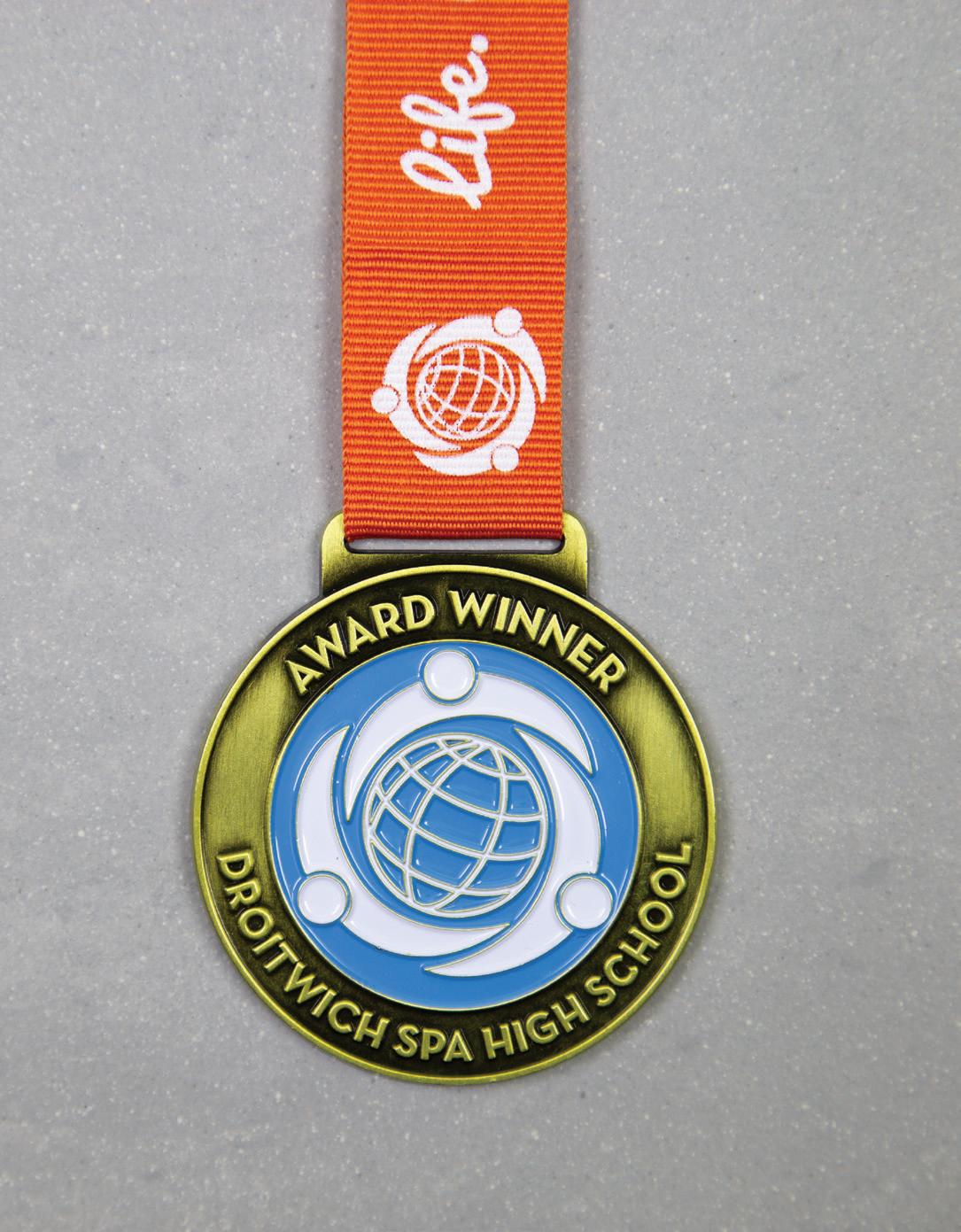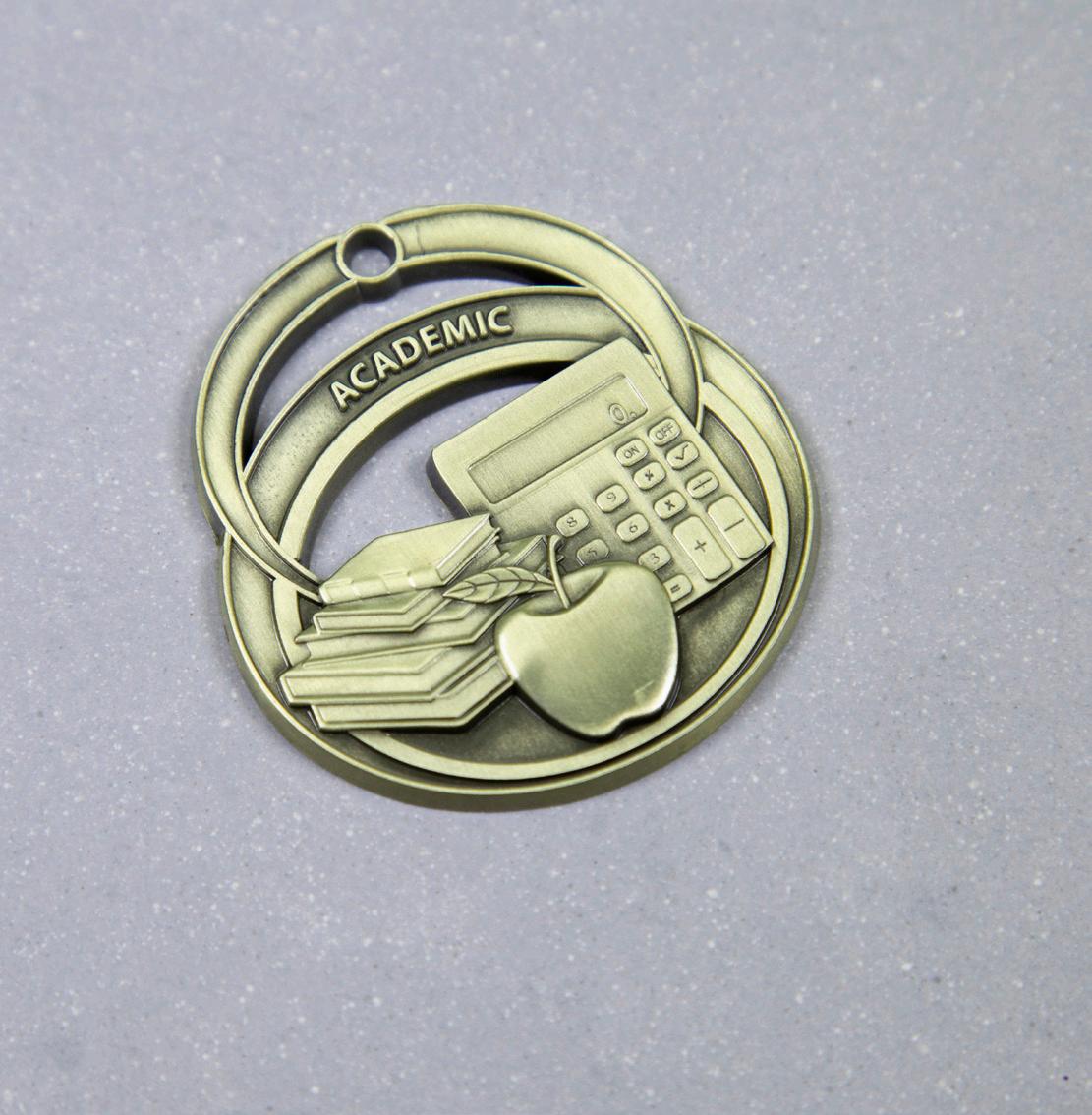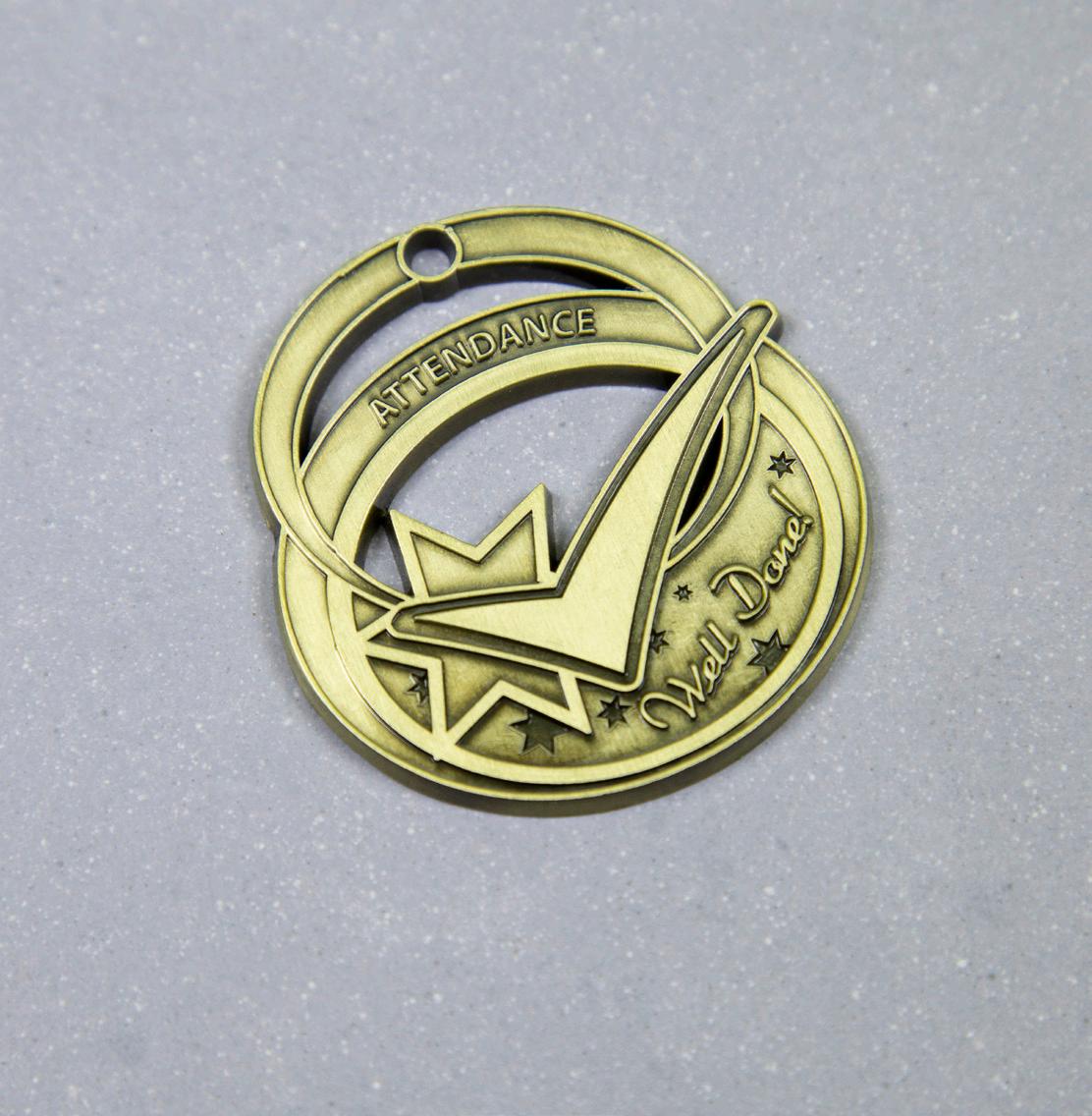 Medals shown have an Antique Gold finish with Partial Enamelling
