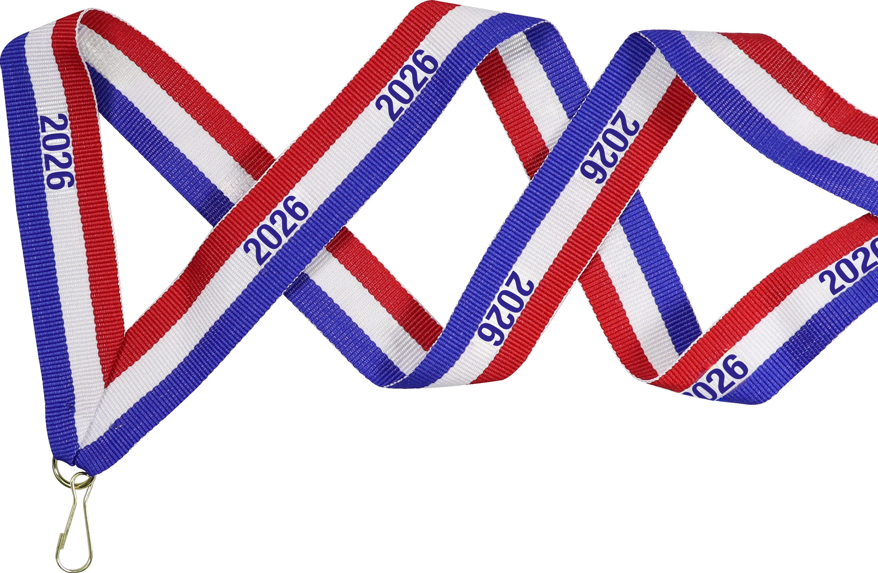 Some medals, where shown, also come with a FREE Deluxe Woven Ribbon sewn into a neat continuous loop.