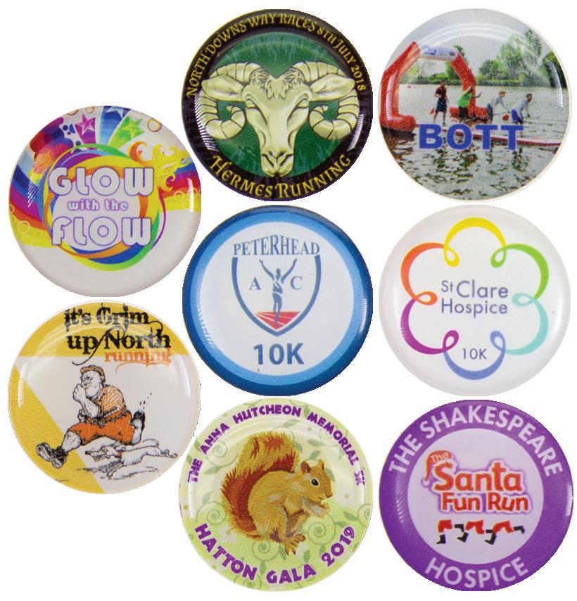 This one piece domed 1” acrylic centre can show your full design, crest or logo. Minimum order 100. No Die Charge. FREE Medal Assembly.