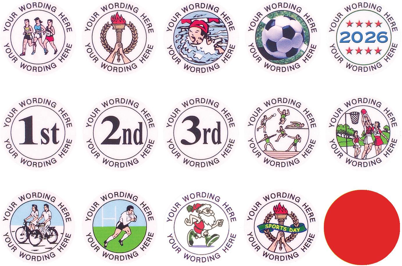 This one piece centre allows wording of your choice around the outer edge showing the sport or activity of your choice - see right. Minimum order 100. No Die Charge FREE Medal Assembly