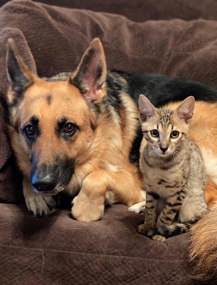 Seven months old with Izzy, German Shepherd Salem’s Pride Savannahs