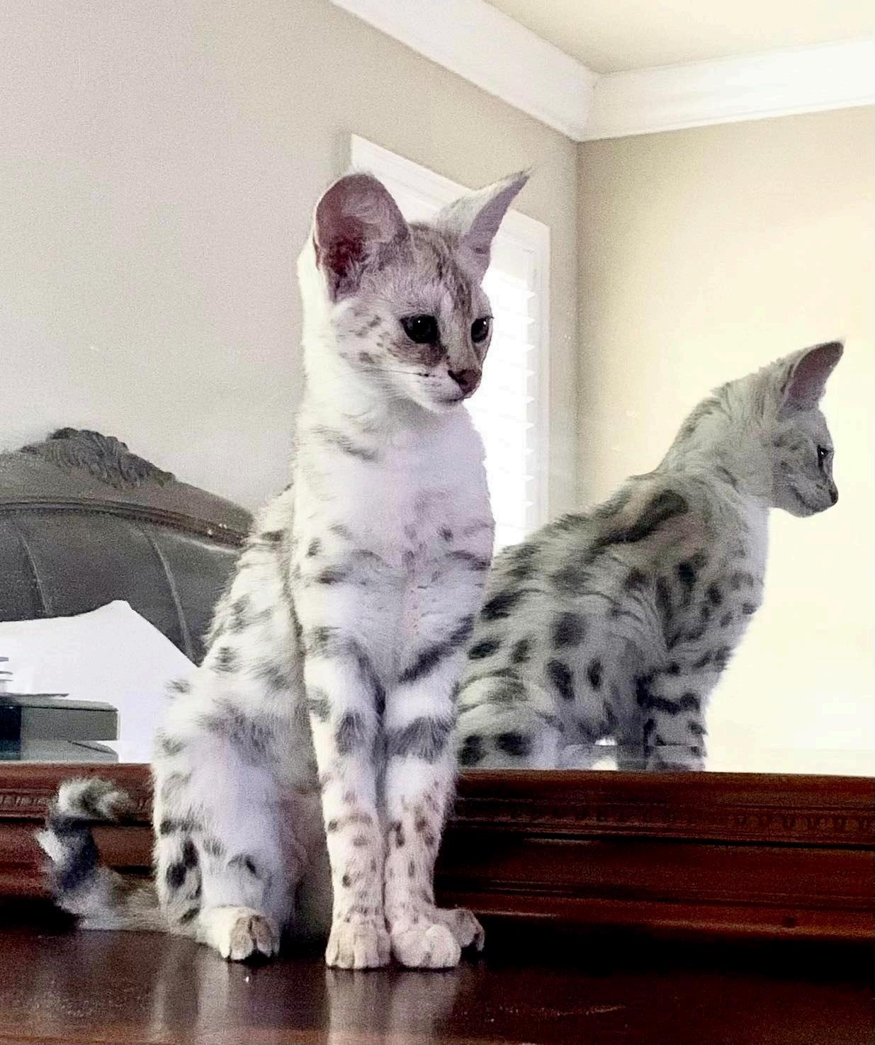**Drinkwater Cats produced the FIRST Female SILVER HPF1 in 2022 and again in 2023. They are d Ser 1 Savannah female "Cloud."