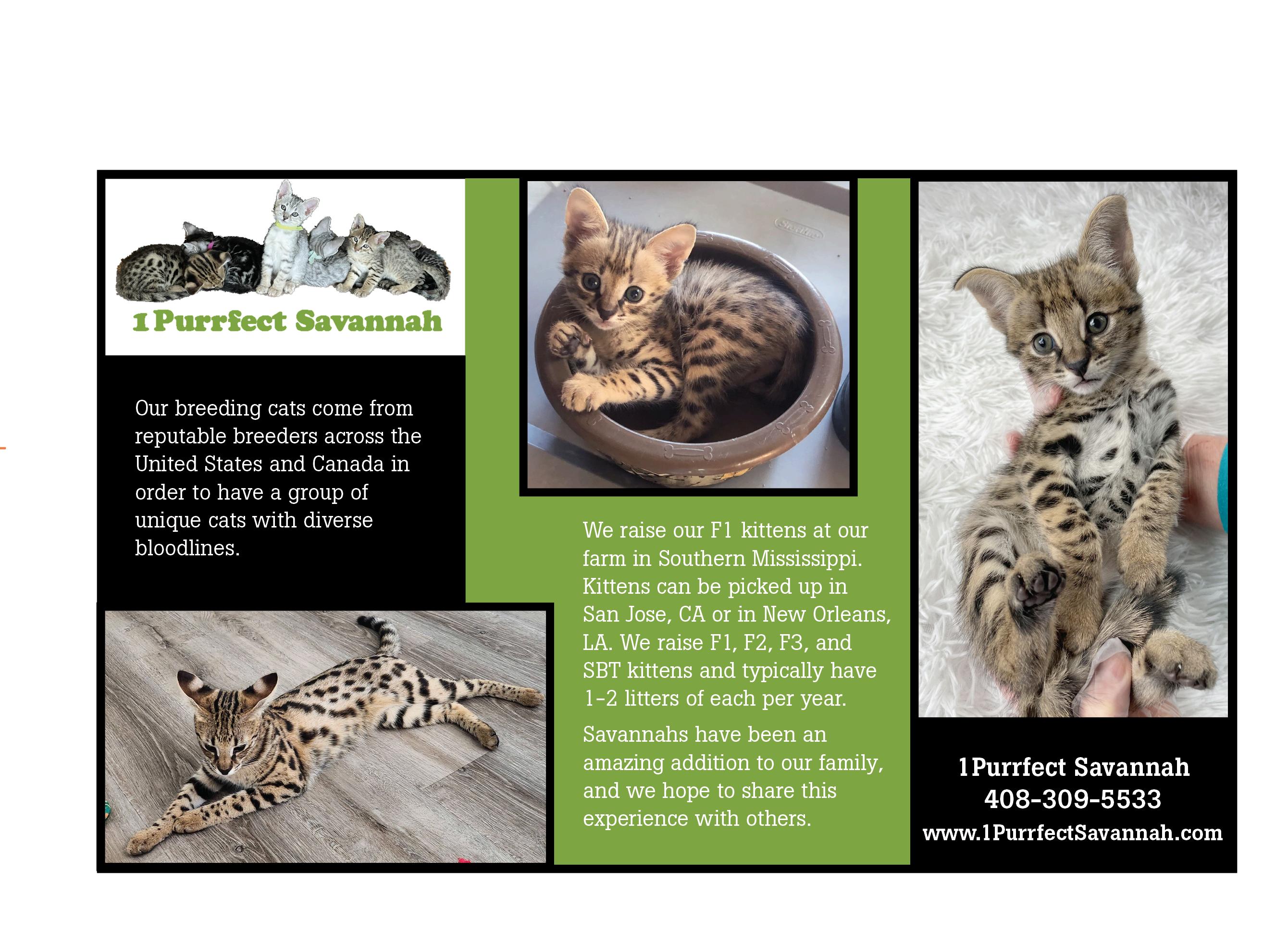 SAVANNAHGANS® welcomes ALL cat lovers to enjoy our content Whether searching for new cat products, health advice, feeding tips, or an excellent DIY project, you'll find it all in each quarterly issue and at www savannahgans com We share a portion of all donations and affiliate revenue with the Savannah Care and Rescue Funds We also recently launched our "Friends of SAVANNAHGANS®" program, so check that out and consider supporting us! Please visit our website's Amazon, Etsy, and other links on our website when shopping for your household needs as we earn commissions