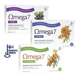 Hemligheten bakom den ursprungliga Ωmega7-produktserien är havtornsoljan som man forskat i i Finland. Du känner igen produkterna för torra slemhinnor, ögon och hud på den dubbla SBA24®-havtornsoljan. Välj Ωmega7kosttillskotten som finländarna har förlitat sig på sedan 1997.