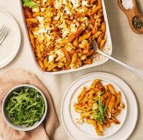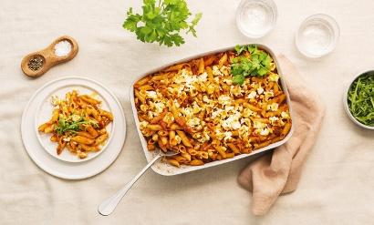 Mörka kvällar smakar det extra gott med len tröstmat – som pasta. Tillred kycklingpasta eller chorizopasta i en ugnsform och njut av en räkpasta eller ravioli med burrata.