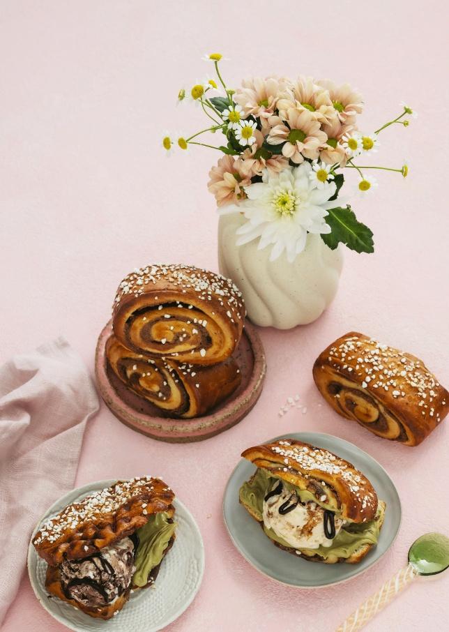 Pistaschkräm som erövrat världen finns nu också i Pirkka Parhaatproduktfamiljen. Prova den mellan kanelbullar som värms i våffeljärn. Dela bullarna, tillsätt pistaschkräm, din favoritglass och chokladsås. Fyllda kanelbullar är perfekt att bjuda på kanelbullens dag den 4 oktober. Se recept på K-Ruoka.fi eller i K-Ruokaappen: jäätelö-korvapuustit.