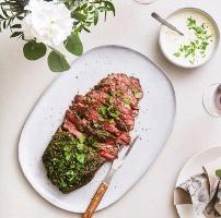 Traditionell rostbiff får ett underbart aromatiskt täcke av smör och örter. Servera steken med pepparrotssås.