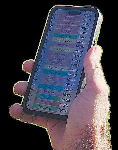 bled the capacity of his parlour to 80 bails. New features include fitting a low line with cup removers, Metatron milk meters together with DemaTron 70 control units (featuring time or flow takeoff) and PPiD (per point identification) with RFID. DairyPlan is linked up to record the milking time, volume and conductivity for each animal, with additional information on animal health, mating and kidding.
