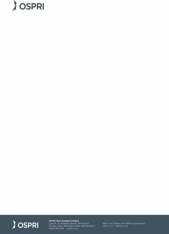 OSPRI is the lead biosecurity agency for New Zealand’s animal industries, jointly owned by DairyNZ, Beef+Lamb NZ and Deer Industry NZ. Currently, OSPRI’s operations include managing the National Animal Identification and Tracing (NAIT) TBfree and Mycoplasma bovis eradication programmes, which are jointly funded by OSPRI’s owners and the Ministry for Primary Industries.