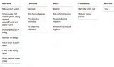 Here, the management practices suitable to the Renwick soil are shown. The selection of management practices was collated from a recent survey of vineyard management practices used by New Zealand growers to promote soil health. This work was undertaken by BRI and a summary is available in the New Zealand Winegrower magazine (June-July 2024 issue).