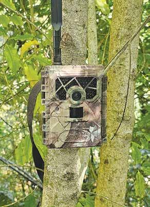 Self-reporting cameras are installed on trees, pointing at an automatic lure dispenser that squirts a small taster of mayonnaise each evening