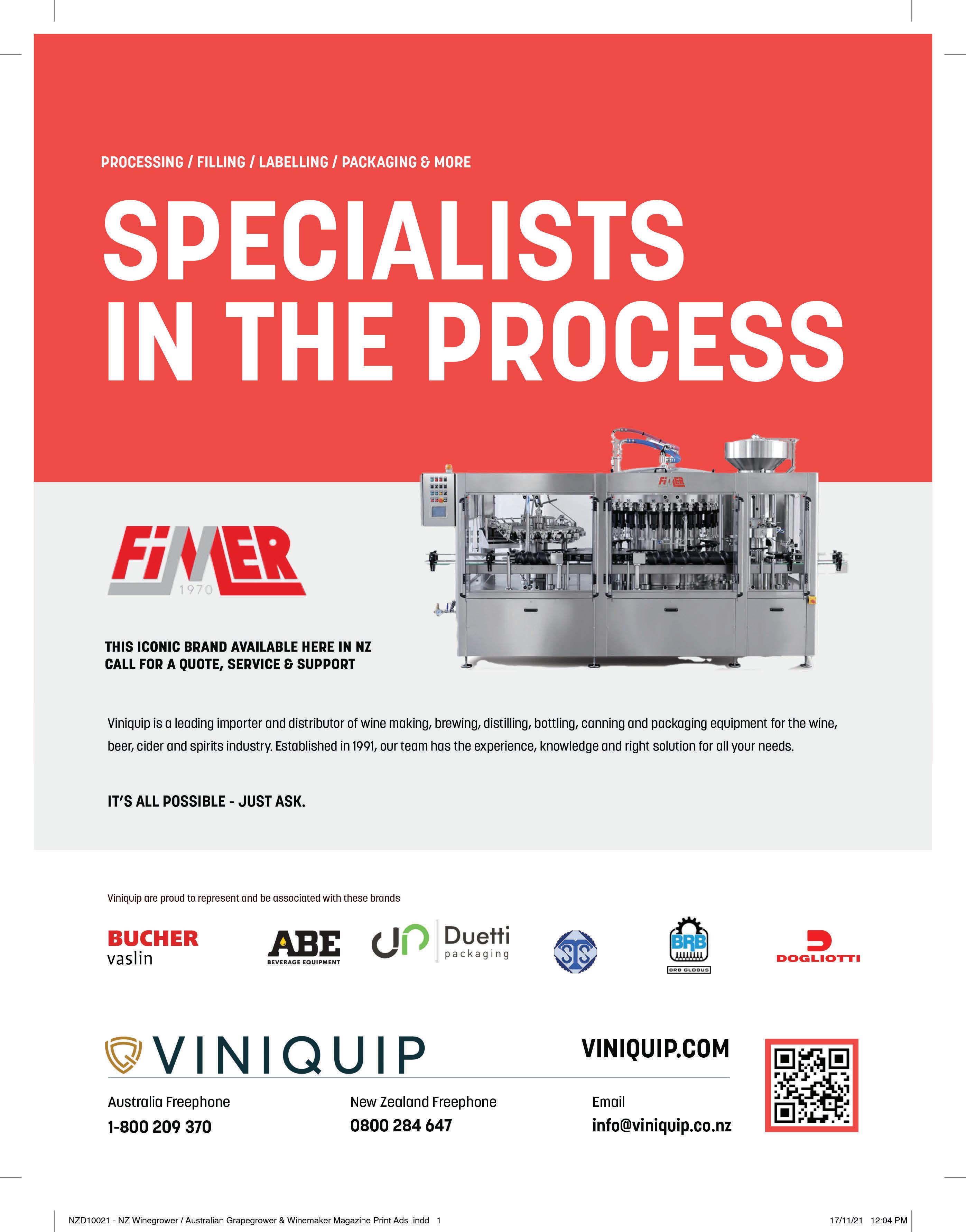 Published by Rural News Group Ltd under authority of New Zealand Winegrowers Inc. Unless directly attributed, opinions expressed in the magazine are not necessarily those of Rural News Group and/or its directors or management, New Zealand Winegrowers Inc. or its constituent organisations. Published every second month. One free copy is mailed to every member of the New Zealand Winegrowers Inc, the New Zealand Society of Viticulture & Oenology and the New Zealand Vine Improvement Group, and to such other persons or organisations as directed by the owners, with provision for additional copies and other recipients to be on a subscription