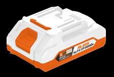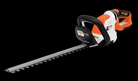 Engine type: Battery: Bar length: Maximum cutting length: Extended length: Chain step: Weight: Electric, brushless Li-Ion 20V 4Ah 4” (10cm) 100 mm 129-170 cm 3/8” 1.3 2.45 kg Battery hedge trimmer Engine type: Battery: Blade length: Cutting diameter: Handle: Weight: Electric, with brushes Li-Ion 20V 4Ah 450 mm 16 mm Rotary 2.2 kg
