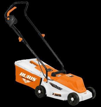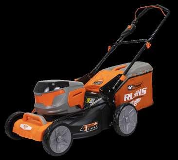 8 RURIS BATTERY RANGE Battery lawn mower RURIS RXI4345e Battery lawn mower RURIS RXI4645Ae Battery lawn mower RURIS RXI4645e 000 xx Order code: 4345e2023 000 xx Order code: 4645ae2023 000 xx Order code: 4645e2023 Engine type: Battery: Battery port number: Battery switch: Working height: Working width: Working surface: Chassis: Grass bag Volume: Electric, brushless Li-Ion 40V 5Ah 15 levels: 25-80 mm 430 mm up to 600 sqm Plastic 45 l Engine type: Battery: Battery port number: Battery switch: Working height: Working width: Working surface: Chassis: Grass bag Volume: Electric, brushless Li-Ion 40V 5Ah 2 Auto switch 6 levels: 25-80 mm 460 mm up to 600 mp Metal 50 l Electric, brushless Li-Ion 40V 5Ah 1+1 pentru depozitare Manual 6 levels: 25-80 mm 460 mm up to 600 sqm Metal 50 l Engine type: Battery: Battery port number: Battery switch: Working height: Working width: Working surface: Chassis: Grass bag Volume: