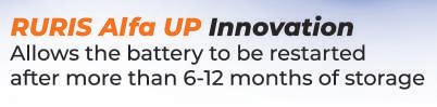 UP INNOVATION Ruris Alpha UP innovation - function that allows the battery to restart after a storage of more than 6-12 months
