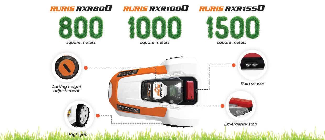 3 Informations and client support email@yoursite.com 000 000 000 BATTERY PRODUCTS UP INNOVATION Battery lawn mower RURIS RXI3324e Battery lawn mower RURIS RXI3744e Battery lawn mower RURIS RXI4344e 000 xx Order code: 3324rx2024 000 xx Order code: 3744rx2024 000 xx Order code: 4344rx2024 Engine type: Battery: Number of batteries: Working height: Working width: Recommended surface: Collector bag volume: Electric, brushless Li-Ion 20V 4Ah 1 5 levels: 25-75 mm 330 mm up to 300 sqm 30 l Engine type: Battery: Number of batteries: Working height: Working width: Recommended surface: Collector bag volume: Electric, brushless Li-Ion 20V 4Ah 2 5 levels: 25-75 mm 370 mm up to 650 sqm 35 l Engine type: Battery: Number of batteries: Working height: Working width: Recommended surface: Collector bag volume: Electric, brushless Li-Ion 20V 4Ah 2 6 levels: 25-75 mm 430 mm up to 650 sqm 50 l MANUAL PROPULSION MANUAL PROPULSION MANUAL PROPULSION 3in1 3in1 3in1 Power e by Li-Ion 4Ah Power 20V max. DOES NOT INCLUDE BATTERY AND CHARGER DOES NOT INCLUDE BATTERY AND CHARGER DOES NOT INCLUDE BATTERY AND CHARGER Package Package Package Battery lawn mower Battery lawn mower Battery lawn mower RURIS RXI3324e Power Alfa UP RURIS RXI3744e Power Alfa UP RURIS RXI4344e Power Alfa UP 000 xx Order code: 3324rxa2024 Engine type: Battery: Number of batteries: Working height: Working width: Recommended surface: Collector bag volume: Electric, brushless Li-Ion 20V 4Ah 1 5 levels: 25-75 mm 330 mm up to 300 sqm 30 l 000 xx Order code: 3744rxa2024 Engine type: Battery: Number of batteries: Working height: Working width: Recommended surface: Collector bag volume: Electric, brushless Li-Ion 20V 4Ah 2 5 levels: 25-75 mm 370 mm up to 650 sqm 35 l 000 xx Order code: 4344rxa2024 Engine type: Battery: Number of batteries: Working height: Working width: Recommended surface: Collector bag volume: Electric, brushless Li-Ion 20V 4Ah 2 6 levels: 25-75 mm 430 mm up to 650 sqm 50 l MANUAL PROPULSION MANUAL PROPULSION MANUAL PROPULSION 3in1 3in1 3in1 INCLUDED INCLUDED INCLUDED
