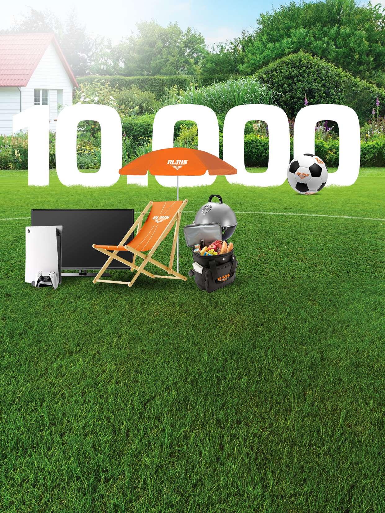 WIN 50x Umbrella 50x Barbeque 50x Cooler bag 10x LCD Tv 10x Gaming console Sunbed 50x Win over prizes instant or by draw! May 1st - August 31st 2024 With RURIS on the ground, go for the