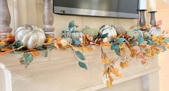 Because sometimes less is more, I kept things on the simple side here. The key is adding the right balance of fall foliage with greenery, and mixing in metallics with organic materials are a