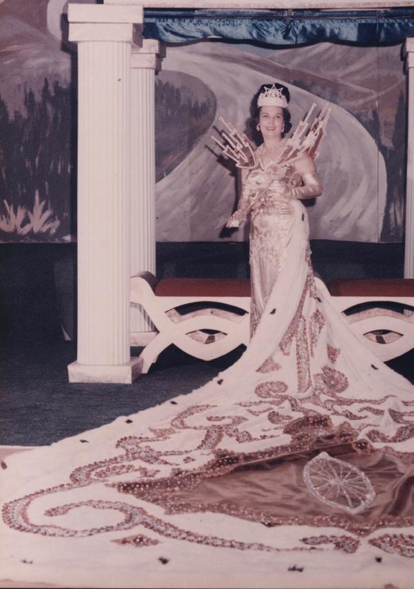 eventually completed and dedicated on Nov. 10, 1960, as the Loretta Guidry Den, named in memory of club member Loretta Guidry, the mother of longtime member and Queen Hyacinth XIV Jackie Cenac. Over the years, the Krewe of Hyacinthians continued to evolve. In 1954, with 11 rented floats, the parade moved to a Sunday afternoon time slot. In 1955, it shifted again — this time to Saturday morning, Feb. 12, at 11 a.m., with the tableau and ball that night at Lamar Auditorium on Bayou Black Drive. By 1956, the club owned its own floats, thanks to donated and purchased