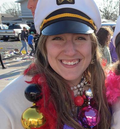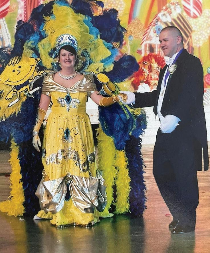 “After moving to Houma, as I got older, we used to park behind the clinic next to the hospital because that’s where my dad worked. In high school, I remember marching with the Tigerettes, loving every minute,” recalled Evette. “After high school, Butch and I started dating and his mom and aunt were members of Hyacinthians. I loved seeing them in the parade and thinking how I would love to do that one day. Fast forward to the last 17 or so years and here I am, living the dream!”