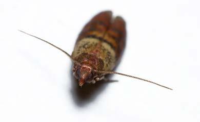 This species possesses two longitudinal stripes on the pronotum (foremost section, in relation to the cockroach’s head, of the three segments on the thorax). Yellowish- brown in colour.
