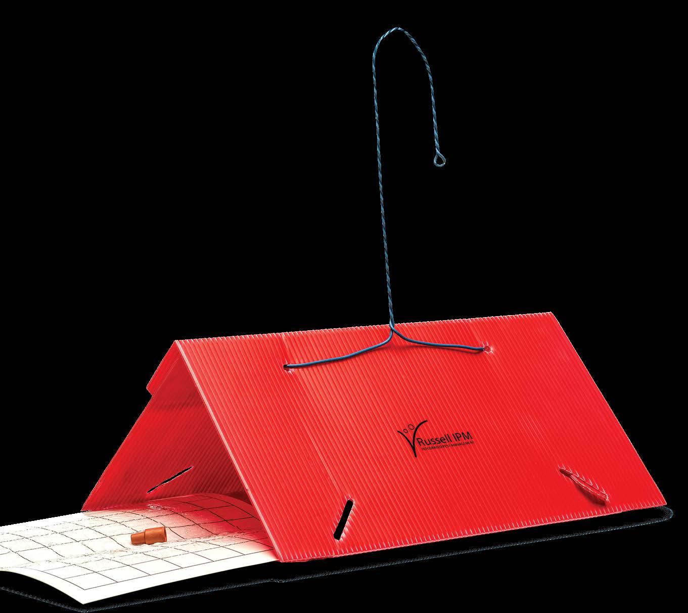 Monitors multiple insects, reducing labour costs of handling individual pheromone dispensers. Precision dosed pheromone incorporated into glue for insect attraction