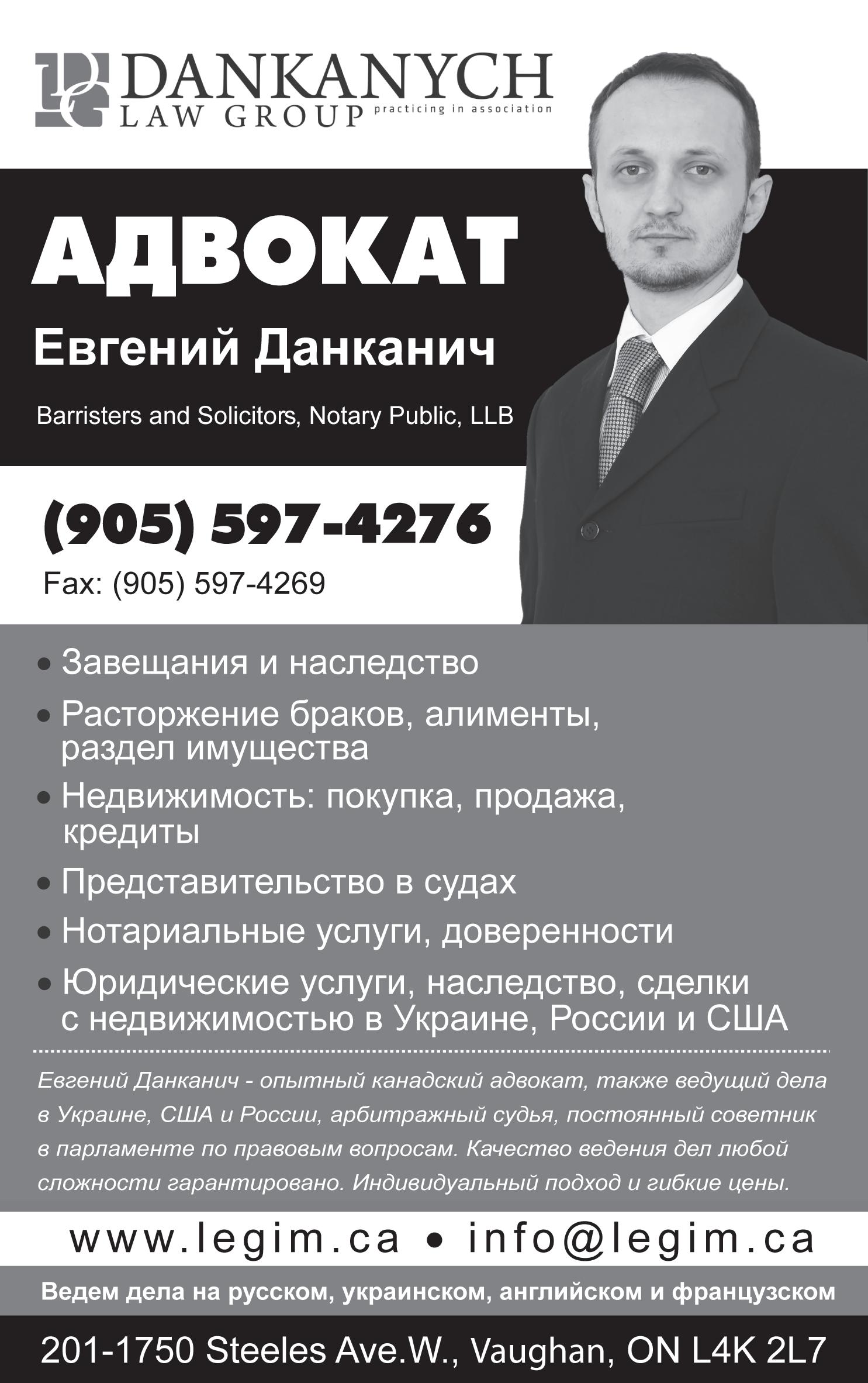 20 416-663–3999 January 06, 2023 №1300 www russianexpress net «торонто экспресс» отдел рекламы «торонто экспресс» МЫ ЗАЩИТИМ ВАШИ ИНТЕРЕСЫ ACCIDENT? ЗВОНИТЕ НАМ! SLOMYANSKI LAW Personal Injury Law Firm МАКСИМАЛЬНАЯ КОМПЕНСАЦИЯ В КАЖДОМ КОНКРЕТНОМ СЛУЧАЕ ФИЗИЧЕСКИЕ И ПСИХОЛОГИЧЕСКИЕ ТРАВМЫ ЛЮБОЙ СТЕПЕНИ ТЯЖЕСТИ ПРИ АВАРИЯХ, ПАДЕНИЯХ И ДРУГИХ НЕСЧАСТНЫХ СЛУЧАЯХ ИСКИ К СТРАХОВЫМ КОМПАНИЯМ ВЫСОКИЙ ПРОФЕССИОНАЛИЗМ ВНИМАТЕЛЬНОЕ ОТНОШЕНИЕ ВЫЕЗЖАЕМ НА ДОМ И В ГОСПИТАЛЬ ПЕРВАЯ КОНСУЛЬТАЦИЯ БЕСПЛАТНО ОПЛАТА ТОЛЬКО ПО ФАКТУ УСПЕШНОГО ЗАВЕРШЕНИЯ ДЕЛА (416) 519.1006 (416) 897.0474 www.slomyanskilaw.com / info@slomyanskilaw.com 1110 Finch Ave West, Suite 500, Toronto, ON M3J 2T2 MARIANA SLOMYANSKI LL.B, LL.M, Barrister & Solicitor, Notary Public