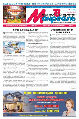 m E E t i n g P L a c E - m O n t r E a L theindependentcanadianrussiannewspaper PuBLiSHEr: