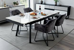 Tisch, Keramikplatte: weiß, Metallgestell: schwarz, ausziehbar, Maße: 120(180)x85 cm, in verschiedenen Größen erhältlich, 202765