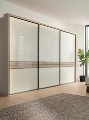 Schlafzimmer, Saharagrau/Glas, Preisbeispeil für: Schrank, 2-türig, BxHxT: 225x208x64 cm, und Bett, 160x200 cm, inkl. Beleuchtung, in verschiedenen Größen und Farben erhältlich. Beimöbel und Zubehör gegen Mehrpreis, 203498/0/2