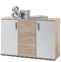 Komoda, sonoma hrast/bela, 2 vrat, 4 predali, ŠxVxG: 120x82x35 cm, 200605/3