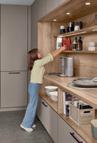 Tehnologija, funkcionalnost in dizajn v popolnem ravnovesju: naravni barvni ton Macchiato poudari prefinjeno oblikovanje in ustvarja vrhunski občutek domačnosti. Svetla delovna površina v skrbno usklajenem hrastovem dekorju poskrbi za harmonično popolnost.