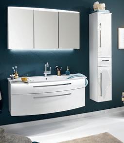 Kopalnica, bela/mat, širina: 80 cm, sestavljena iz: omare pod umivalnikom, belega umivalnika in omare z ogledalom vklj. LED osvetljava, na voljo v različnih barvah in izvedbah. Dodatno pohištvo za doplačilo, 200378/02