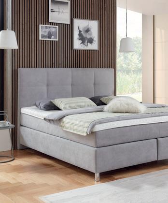 Boxspring postelja, blago: sivo, 240x200 cm, vklj. 7-conski vzmetnici in nadvložek iz hladne pene. Dodatki so za doplačilo, 202282