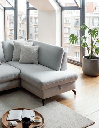 Sedežna garnitura, tkanina, srebrna barva, vklj. pravi hrbet, mere: 241x173 cm, na voljo v različnih postavitvah in barvnih kombinacijah. Posteljna funkcija, predal za posteljnino, nastavljiva globina sedenja, nasloni za roke, nasloni za glavo in blazine za doplačilo, 204744/1