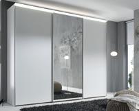 Izvedba 02: Korpus in zunanja vrata v dekorju imitacije hrasta Artisan, sredinska vrata iz kristalnega ogledala. Ročaji/dekorativni trakovi v ozki aluminijasti izvedbi.