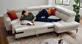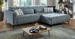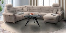 Sedežna garnitura, tkanina, siva/bež, noge: alu, vklj. 4 okrasne blazine, mere: 268x350x165 cm, na voljo v različnih postavitvah in barvnih kombinacijah. Električna nastavitev sedeža, posteljna funkcija in nasloni za glavo za doplačilo, 202455/1