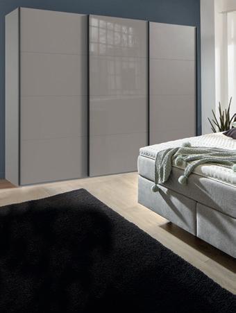 Spalnica, siva/steklo, cenovni primer za: omaro, 2-delna, ŠxVxG: 225x208x64 cm, in posteljo, 160x200, vključno z osvetlitvijo, na voljo v različnih barvah in velikostih. Komoda in dodatki so za doplačilo, 203498/0/2
