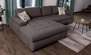 Sedežna garnitura, tkanina, antracit, kovinske noge: krom, vklj. pravi hrbet, mere: 169x256 cm, na voljo v različnih postavitvah in barnih kombinacijah. Posteljna funkcija, predal za posteljnino, nastavljivi nasloni za roke, nastavljiv nasloni za glavo in blazine za doplačilo, 202025/1