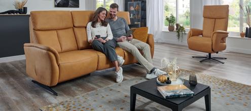 Zofa, tkanina, barva: dijon, ŠxVxG: 210x109(112)x108 cm, na voljo v različnih velikostih, barvah in izvedbah. Motorizirana TV-funkcija, funkcija mize, vtičnica z USB, pravi hrbet, črne noge in motorizirana nastavitev naslona za glavo za doplačilo, 199496/4. Počivalnik, tkanina, barva: dijon, mere: 70x115(119)x85 cm, na voljo v različnih izvedbah in barvah. Motorizirana funkcija in nastavljivi naslon za glavo za doplačilo, 199496/5