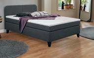 Boxspring postelja, blago: svetlo sivo, noge: les, črne, 180x200 cm, spodnji del z žepkastimi vzmetmi, gladko vzglavje, 7-conska Drell-vzmetnica s 1000 žepkastimi vzmetmi in lateksom, 2 jedri, na voljo v različnih barvah, velikostih in izvedbah. Nadvložek in dodatki so za doplačilo, 203772/1