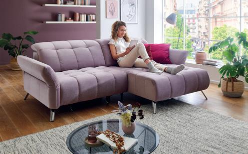 Sedežna garnitura, tkanina, lila, kovinske noge: barva krom, mere: 244x173 cm, na voljo v različnih postavitvah in barvnih kombinacijah. Nastavljivi nasloni za roke, nastavljivi nasloni za glavo, motorizirana funkcija in blazine za doplačilo, 202479/1