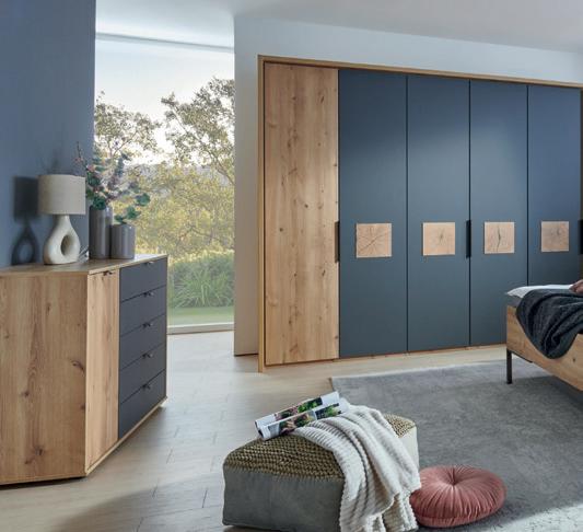 Spalnica, hrast Bianco/temno siva, cenovni primer za: omara, 5-delna, ŠxVxG: 250x216x58 cm, in posteljo, 180x200 cm, vklj. oblazinjeno vzglavje, na voljo v različnih velikostih. Dodatki so za doplačilo, 203674/2/4